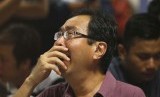 Keluarga penumpang pesawat AirAsia QZ 8501, menangis histeris saat mendengar kabar ditemukannya serpihan pesawat, di Bandara Internasional Juanda, Surabaya, Selasa (30/12). (AP/Trisnadi)