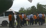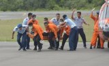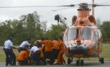 REPUBLIKA.CO.ID, PANGKALAN BUN -- Anggota BASARNAS memindahkan jenazah korban kecelakaan pesawat Air Asia dari helikopter BASARNAS di Lanud Iskandar, Pangkalan Bun, Kalimantan Tengah, untuk dibawa ke RSUD Sultan Imanudin, Rabu (31/12).