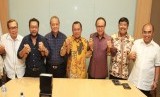 (dari kiri) Andi Matalatta, Yorrys Raweyai, MS Hidayat, Priyo Budi Santoso, Syarief Cicip Sutardjo, Ibnu Munzier dan Fredy Latumaheni, sebelum pertemuan tertutup di Kantor DPP Golkar Jakarta, Kamis (8/1). (Antara/Akbar Nugroho Gumay)
