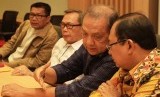 MS Hidayat (kedua kanan) berdiskusi dengan kubu Agung Laksono, Priyo Budi Santoso (kanan), didampingi Andi Matalatta (kedua kiri) dan Agun Gunanjar (kiri) di Kantor DPP Golkar Jakarta, Kamis (8/1). (Antara/Akbar Nugroho Gumay)