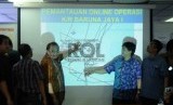 Peneliti BPPT menerangkan titik koordinat kotak hitam (Black Box) pesawat Air Asia QZ8501 kepada Menteri Menko Kelautan dan Kemaritiman, Indroyono Soesilo saat jumpa pers di Kantor BPPT, Jakarta, Ahad (11/1). (Republika/Agung Supriyanto)