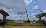 REPUBLIKA.CO.ID, JAKARTA -- Pekerja sedang mengerjakan pembangunan konstruksi Tol Bekasi-Cawang-Kampung Melayu (Becakayu) di Pondok Kelapa, Jakarta Timur, Ahad (11/1).