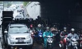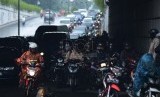 REPUBLIKA.CO.ID, JAKARTA -- Sejumlah pengendara sepeda motor berteduh menunggu hujan reda di underpass Pasar Minggu-Kalibata, Jakarta Selatan, Senin (12/1).