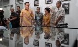 REPUBLIKA.CO.ID, JAKARTA -- Ketua Dewan Pertimbangan Partai Golkar Akbar Tandjung bersama para tokoh dan anggota Dewan Pertimbangan Golkar bersiap memberikan keterangan pers di Jakarta, Rabu (14/1).