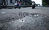 REPUBLIKA.CO.ID, JAKARTA -- Kendaraan melintas di samping jalan yang berlubang di Jalan Otista, Jakarta Timur, Rabu (21/1).