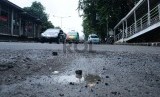 Jalan yang berlubang akibat tergerus oleh air hujan tersebut membahayakan pengguna jalan yang melintas di kawasan tersebut terutama pada malam hari.