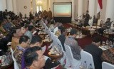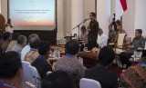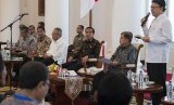 REPUBLIKA.CO.ID, BOGOR -- Presiden Joko Widodo memberikan pengarahan pada rapat koordinasi dengan para bupati dari wilayah pulau Sumatera di Ruang Garuda, Istana Bogor, Jawa Barat, Kamis (22/1).