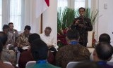Presiden Joko Widodo memberikan pengarahan pada rapat koordinasi dengan para bupati dari wilayah pulau Sumatera di Ruang Garuda, Istana Bogor, Jawa Barat, Kamis (22/1). (Antara/Widodo S. Jusuf)