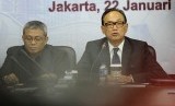 REPUBLIKA.CO.ID, JAKARTA -- Ketua Umum Kamar Dagang dan Industri (Kadin) Indonesia Suryo Bambang Sulisto memberikan keterangan tentang catatan awal tahun dan perkiraan ekonomi 2015 di Menara Kadin Jakarta, Kamis (22/1).