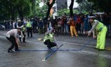 REPUBLIKA.CO.ID, JAKARTA -- Anggota kepolisian laka lantas Polri bersama anggota kepolisian Polres Metro Jakarta Selatan melakukan olah tempat kejadian perkara (TKP) kasus tabrakan outlander yang menewaskan 4 orang di Arteri Pondok Indah, Jakarta Selatan, Kamis (22/1).