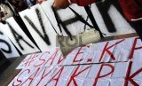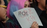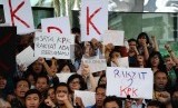 REPUBLIKA.CO.ID, JAKARTA -- Demonstran dari Koalisi Masyarakat Sipil Anti Korupsi melakukan aksi simpatik di halaman kantor Komisi Pemberantasan Korupsi (KPK), Jakarta, Jumat (23/1).