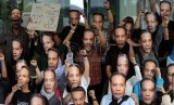 REPUBLIKA.CO.ID, JAKARTA -- Piuluhan warga yang tergabung dalam Gerakan Rakyat Melawan Korupsi mengenakan topeng berwajah Wakil Ketua KPK, Bambang Widjojanto saat menggelar aksi di depan Gedung KPK, Jakarta, Sabtu (24/1).