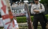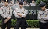 REPUBLIKA.CO.ID, Polisi menjaga aksi unjuk rasa di depan Gedung KPK, Jakarta Selatan, Senin (26/1).