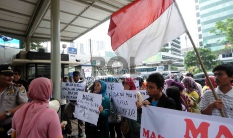 REPUBLIKA.CO.ID, JAKARTA -- Sejumlah warga yang tergabung dalam Masyarakat Anti Korupsi (MARAK) meggelar aksi di depan Gedung KPK, Jakarta, Senin (26/1).