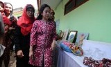 Puan Maharani (tengah), memperhatikan sejumlah karya kerajinan siswa saat mengunjungi SMP Cisarua, Kabupaten Bandung Barat, Rabu (28/1). (foto: Septianjar Muharam) (FOTO : Republika Bandung)
