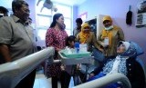 Puan Maharani (tengah) , berbincang dengan seorang pasien saat meninjau ruangan klinik Gigi, di Puskesmas Cisarua, Kabupaten Bandung Barat, Rabu (28/1). (foto: Septianjar Muharam) (FOTO : Republika Bandung)