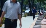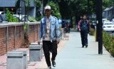 REPUBLIKA.CO.ID, JAKARTA -- Pengguna jalan menggunakan jalur pedestrian di Jalan Rasuna Said, Jakarta Selatan, Jumat (30/1).