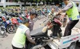 REPUBLIKA.CO.ID, BANDUNG -- Sebanyak 632 unit kendaraan roda dua dan ratusan kenalpot bising dikumpulkan di halaman Polrestabes Bandung, Senin (2/2).