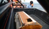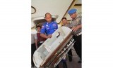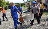 REPUBLIKA.CO.ID, DONGGALA -- Personel Basarnas berada di dekat kabin pesawat yang ditemukan nelayan di perairan Towale Selat Makassar, Donggala, Sulawesi Tengah, Selasa (3/2).