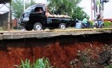 REPUBLIKA.CO.ID, DEPOK -- Warga serta pengendara motor atau mobil harus berhati-hati saat melintasi Jalan Raya Tanah Baru, Depok, Rabu (4/2).