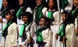 Paduan suara cilik menyanyikan Hyme saat Dies Natalis Himpunan Mahasiswa Islam (HMI) ke 68 di Jakarta, Kamis (5/2)malam. (Republika/Tahta Aidilla)