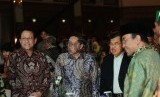 Wakil Presiden Jusuf Kalla, Ketua DPD RI Irman Gusman, Ketua MPR RI Zulkifli Hasan dan Ketua BPK RI Haris Azhar Aziz, saat menghadiri Dies Natalis Himpunan Mahasiswa Islam (HMI) ke-68 di Jakarta, Kamis (5/2) malam. (Republika/Tahta Aidilla)