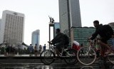 REPUBLIKA.CO.ID, JAKARTA -- Meski hujan gerimis di kawasan Car Free Day, warga tetap antusias untuk melakukan olahraga pagi di kawasan Bundaran Hotel Indonesia, Jakarta, Ahad (8/2).