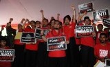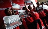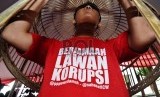 ?Pemuda Muhammadiyah membawa poster anti korupsi saat deklarasi Gerakan Berjamaah Lawan Korupsi di PP Muhammadiyah, Jakarta, Ahad (8/2). (Republika/Tahta aidilla)