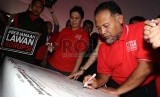 Wakil Ketua KPK Bambang Widjojanto menandatangani petisi saat deklarasi di PP Muhammadiyah, Ahad (8/2). (Republika/Tahta aidilla)