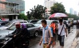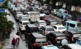 Akibat hujan yang mengguyur Ibukota, sejumlah ruas jalan tergenang air sehingga menghambat laju kendaraan dan mengakibatkan macet.
