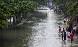 Genangan air melumpuhkan sejumlah kawasan di Jakarta dan daerah sekitarnya akibat terendam banjir, akibat hujan yang mengguyur sejak Ahad (8/2) malam.