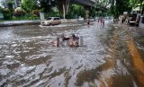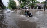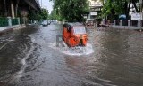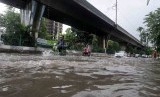 Ruas jalan ini kembali tergenang air akibat hujan yang mengguyur Ibu Kota sejak Ahad pagi.