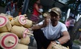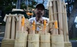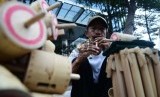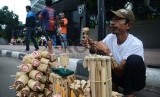 REPUBLIKA.CO.ID, JAKARTA -- Pedagang mainan tradisional, Parman (42) menjajakan mainan tradisional yang dijualnya saat Car Free Day (CFD) di Jalan Thamrin, Jakarta Pusat, Ahad (15/2).