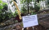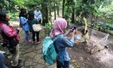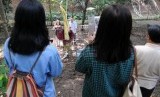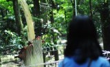 Pengunjung memperhatikan bunga bangkai raksasa (Amorphophallus titanium) yang mekar di Taman Hutan Raya Ir. H. Djuanda, Kota Bandung, Senin (16/2). (foto : Septianjar Muharam)