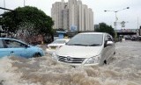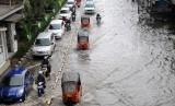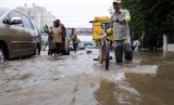 REPUBLIKA.CO.ID, JAKARTA -- Genangan air banjir setinggi 30 cm merendam Jalan Gunung Sahari di depan WTC Mangga Dua, Jakarta Utara, Kamis (19/2).