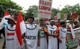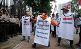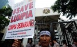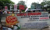 REPUBLIKA.CO.ID, JAKARTA -- Aktivis Forum Masyarakat Peduli Budaya Indonesia melakukan aksi Save Lumpia di depan Kedutaan Besar Malaysia, Jakarta Selatan, Jumat (20/2).