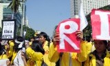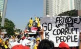 REPUBLIKA.CO.ID, JAKARTA -- Sejumlah aktivis alumni Universitas Indonesia, IPB, serta ITB menggelar aksi dukungan terhadap KPK dan Polri untuk memberantas korupsi di Indonesia, aksi iberlangsung di Bundaran HI, Jakarta, Ahad (22/2).