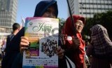 REPUBLIKA.CO.ID, JAKARTA -- Menyambut kegiatan Islamic Book Fair (IBF) 201, ratusan massa mengikuti karnaval saat Car Free Day (CFD) di Bundaran HI, Jakarta, Ahad (22/2).