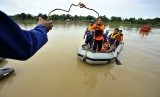 Tim SAR melakukan pencarian korban perahu penyeberangan yang tenggelam di Penyeberangan Mallengkeri Sungai Jenneberang, Gowa, Sulawesi selatan, Senin (23/2). (Antara/Yusaran Uccang)