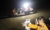 Tim SAR melakukan pencarian korban perahu penyeberangan yang tenggelam di Penyeberangan Mallengkeri Sungai Jenneberang, Gowa, Sulawesi selatan, Senin (23/2) dinihari. (Antara/Abriawan Abhe)