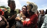 Keluarga korban menangis saat mengetahui keluarganya menjadi korban tenggelamnya perahu penyeberangan di Penyeberangan Mallengkeri Sungai Jenneberang, Gowa, Sulawesi selatan, Senin (23/2). (Antara/Yusaran Uccang)