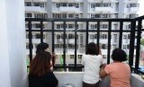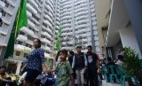 Warga memeriksa tempat tinggal yang akan ditempatinya di Rusunawa Tambora, Kelurahan Angke, Kecamatan Tambora, Jakarta Barat, Selasa (24/2). (Republika/Raisan Al Farisi) (FOTO : Republika/Raisan Al Farisi)
