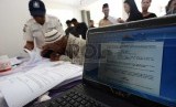 Warga mendaftarkan diri untuk tempat tinggal yang akan ditempati di Rusunawa Tambora, Kelurahan Angke, Kecamatan Tambora, Jakarta Barat, Selasa (24/2). (Republika/Raisan Al Farisi) (FOTO : Republika/Raisan Al Farisi)