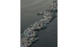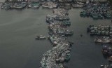 REPUBLIKA.CO.ID, BALI -- Tampak dari udara sejumlah kapal ditambatkan berjajar di Bali, Jumat (27/2).