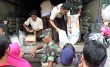 REPUBLIKA.CO.ID, JAKARTA -- Petugas Bulog dibantu personil TNI melaksanakan operasi pasar beras di depan Taman Lenteng Agung, Jakarta, Selasa (3/3).