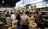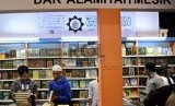 Pengunjung melihat koleksi buku di stan penerbit luar negeri pada Islamic Book Fair ke-14, Istora Senayan, Jakarta, Jumat (6/3). (Republika/Tahta Aidilla)