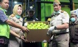 REPUBLIKA.CO.ID, KARAWANG -- Petugas Badan Karantina Kementerian Pertanian menunjukkan buah apel segar asal Amerika Serikat yang akan dimusnahkan di salah satu pabrik pengolahan dan pemanfaatan limbah B-3 di Karawang, Jabar, Jumat (6/3).