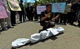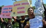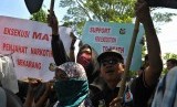 Pengunjuk rasa dari Gerakan Nasional Anti Narkotika (Granat) berunjuk rasa mendukung pelaksanaan eksekusi mati terhadap para terpidana kasus narkoba, di dermaga penyeberangan Wijayapura, Cilacap, Jateng, Jumat (6/3). (Antara/R. Rekotomo)
