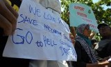 REPUBLIKA.CO.ID, CILACAP -- Pengunjuk rasa dari Gerakan Nasional Anti Narkotika (Granat) berunjuk rasa mendukung pelaksanaan eksekusi mati terhadap para terpidana kasus narkoba, di dermaga penyeberangan Wijayapura, Cilacap, Jateng, Jumat (6/3).
