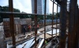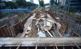 REPUBLIKA.CO.ID, JAKARTA -- Pekerja mengerjakan pembangunan jalan inspeksi di Jalan MH Thamrin, Jakarta Pusat, Senin (9/3).